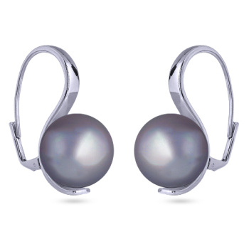 Изготовлено из ювелирного сплава на основе латуни с гальваническим покрытием родием. Изделие украшает майорский круглый жемчуг серо-голубого цвета диаметром 16мм. Французский замок. Длина 3.5см.