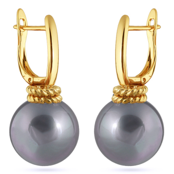 Изготовлено из ювелирного сплава на основе латуни с гальваническим покрытием золотом. Изделие украшает майорский барочный жемчуг серо-голубого цвета диаметром 16мм. Длина серьги 3.5см. Английская застежка.