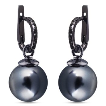 Изготовлено из ювелирного сплава на основе латуни с гальваническим покрытием черным родием. Изделие украшают майорский круглый жемчуг темно-серого цвета диаметром 16мм. Английский замок. Длина 3, 5см.