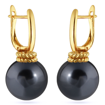 Изготовлено из ювелирного сплава на основе латуни с гальваническим покрытием золотом. Изделие украшает майорский барочный жемчуг темно-серого цвета диаметром 16мм. Длина серьги 3.5см. Английская застежка.