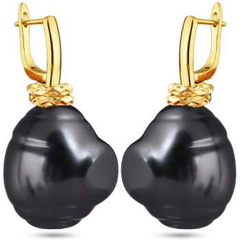 Изготовлено из ювелирного сплава на основе латуни с гальваническим покрытием золотом. Изделие украшает барочный жемчуг Майорка темно-серого цвета диаметром 18мм. Длина серьги 4см. Английская застежка.