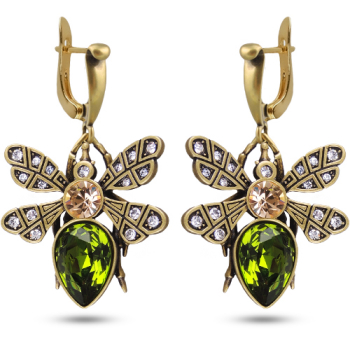 Изготовлено из ювелирного сплава на основе латуни с гальваническим покрытием бронзой. Изделие украшают кристаллы SW зеленого и шампань цвета и белый жемчуг Майорка. Размер украшения 4.5х3см. Английская застежка.