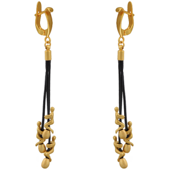 Изготовлено из ювелирного сплава на основе латуни с гальваническим покрытием матовым золотом. Длина серьги на черном текстильном шнурке 7.5см. Застежка-гвоздики.