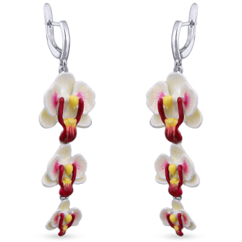 Серьги Орхидея (эмаль белая, розовая; покрытие родий), Есть комплект