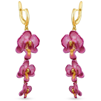 Серьги Орхидея (эмаль розовая; покрытие золото), Есть комплект