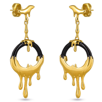 Изготовлено из ювелирного сплава на основе латуни с гальваническим покрытием золотом. Изделие украшает эмаль черного цвета. Размер серьги 5.5х2см. Застежка-гвоздики.