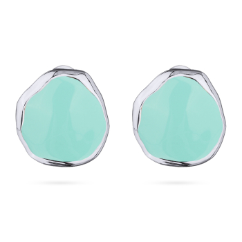 Изготовлено из ювелирного сплава на основе латуни с гальваническим покрытием родием. Изделие украшает эмаль цвета морская свежесть. Размер серьги 2, 5х2, 5см. Французская застежка.
