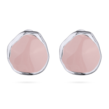 Изготовлено из ювелирного сплава на основе латуни с гальваническим покрытием родием. Изделие украшает эмаль розового цвета. Размер серьги 2, 5х2, 5см. Французская застежка.