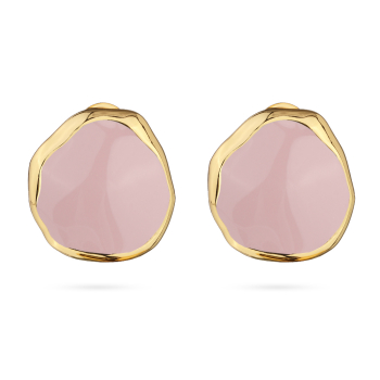 Изготовлено из ювелирного сплава на основе латуни с гальваническим покрытием золотом. Изделие украшает эмаль розового цвета. Размер серьги 2, 5х2, 5см. Французская застежка.