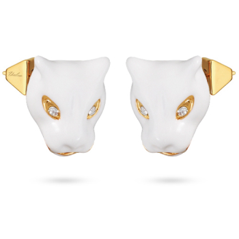 Изготовлено из ювелирного сплава на основе латуни с гальваническим покрытием золотом. Изделие покрыто эмалью белого цвета и украшено белыми кристаллами Сваровски. Размер украшения 1.5х1см. Застежка-гвоздики.