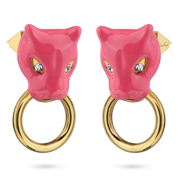 Изготовлено из ювелирного сплава на основе латуни с гальваническим покрытием золотом. Изделие покрыто эмалью цвета фуксия и украшено белыми кристаллами SW. Размер украшения 2.5х1.5см.
