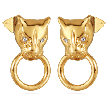 Изготовлено из ювелирного сплава на основе латуни с гальваническим покрытием золотом. Изделие украшают белые кристаллы SW. Размер украшения 2.5х1.5см. Застежка-гвоздики.