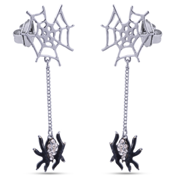 Выполнено из ювелирного сплава на основе латуни с гальваническим покрытием родием. Изделие расписано краской черного цвета, покрыто эмалью и украшено кристаллами SW белого цвета. Застёжка-гвоздики. Длина 6.5см.
