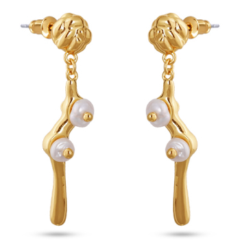 Изготовлено из ювелирного сплава на основе латуни с гальваническим покрытием золотом. Изделие украшает перламутр белого цвета. Длина 4.2см. Застежка-гвоздики.