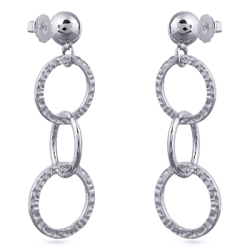 Изготовлено из ювелирного сплава на основе латуни с гальваническим покрытием родием. Размер серьги 5.5х1.8см. Застежка-гвоздики.