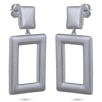 Изготовлено из ювелирного сплава на основе латуни с гальваническим покрытием сатиновым родием. Размер серьги 5х2.5см. Застежка-гвоздики.