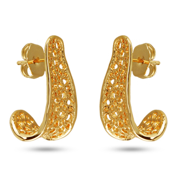 Изготовлено из ювелирного сплава на основе латуни с гальваническим покрытием золотом. Застёжка - гвоздики. Длина 3см.
