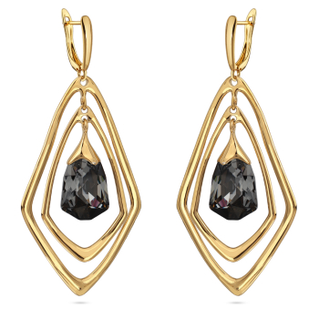 Изготовлено из ювелирного сплава на основе латуни с гальваническим покрытием золотом. Изделие украшают кристаллы SW темно-серого цвета. Размер серьги 7х3, 5см. Английская застежка.