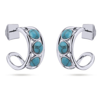 Изготовлено из ювелирного сплава на основе латуни с гальваническим покрытием родием. Изделие украшает бирюза. Размер серьги 2х1см. Застежка-гвоздики.