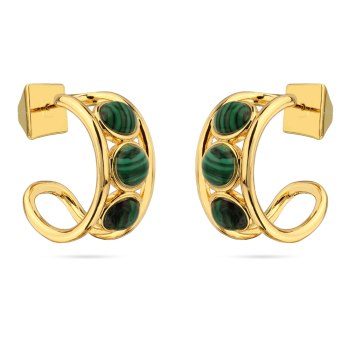 Изготовлено из ювелирного сплава на основе латуни с гальваническим покрытием золотом. Изделие украшает малахит. Размер серьги 2х1см. Застежка-гвоздики.