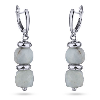 Изготовлено из ювелирного сплава на основе латуни с гальваническим покрытием родием. Изделие украшает граненый аквамарин диаметром 7мм. Длина серьги 3.5см. Английская застежка.
