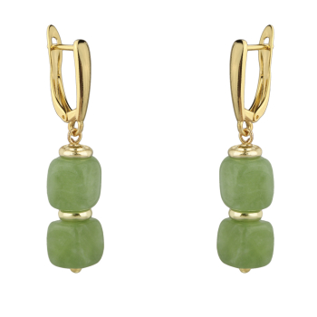 Серьги Селена (кварц ярко-зеленый 7-8мм; покрытие золото), Есть комплект