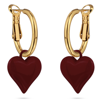 Изготовлено из ювелирного сплава на основе латуни с гальваническим покрытием золотом. Изделие украшает эмаль цвета бургунди. Размер серьги 3, 5х1, 6см. Итальянская застежка.