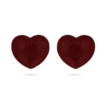 Изготовлено из ювелирного сплава на основе латуни с гальваническим покрытием золотом. Изделие украшает эмаль цвета бургунди. Размер серьги 1.8х1.8см. Застежка-гвоздики.