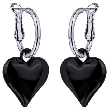Серьги Сердцебиение (2, 5см, эмаль черная; покрытие родий), Есть комплект