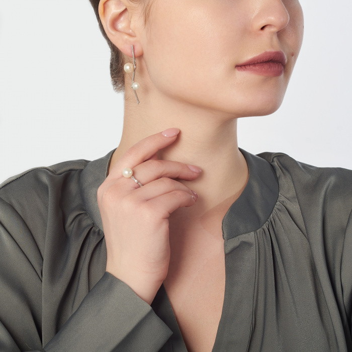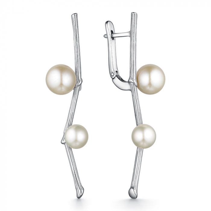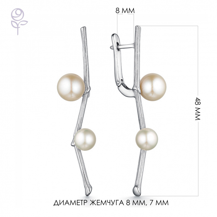 Металл: Серебро Вставка: жемчуг культивированный Размер жемчуга: 6,5-7 мм Форма огранки жемчуга: Круг Покрытие: Родий Дополнительные вставки: Без вставок
