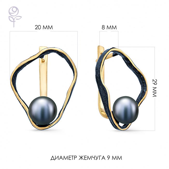 Вставка: жемчуг культивированный Размер жемчуга: 8,5-9 мм Форма огранки жемчуга: Кабoшон Покрытие: Позолота Цвет эмали: Синяя Дополнительные вставки: Без вставок