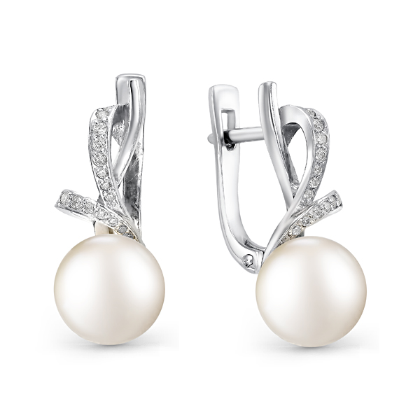 Вставка: жемчуг культивированный Размер жемчуга: 9.5-10 мм Форма огранки жемчуга: Кабoшон Покрытие: Родий Дополнительные вставки: Фианиты