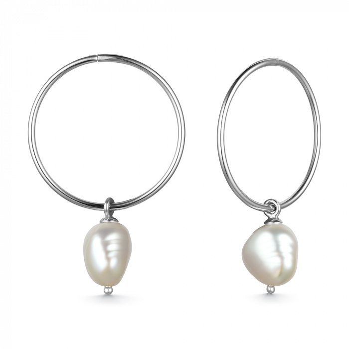 Вставка: жемчуг барокко культивированный Форма огранки жемчуга: Барокко Покрытие: Родий Дополнительные вставки: Без вставок