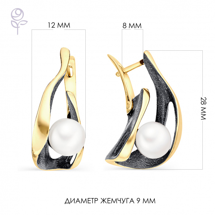 Металл: Серебро Вставка: жемчуг культивированный Размер жемчуга: 8,5-9 мм Форма огранки жемчуга: Кабoшон Покрытие: Позолота Дополнительные вставки: Без вставок