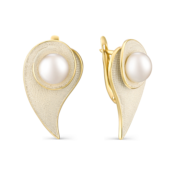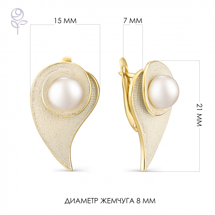 Металл: Серебро Вставка: жемчуг культивированный Размер жемчуга: 7,5-8 мм Форма огранки жемчуга: Кабoшон Покрытие: Позолота Дополнительные вставки: Без вставок
