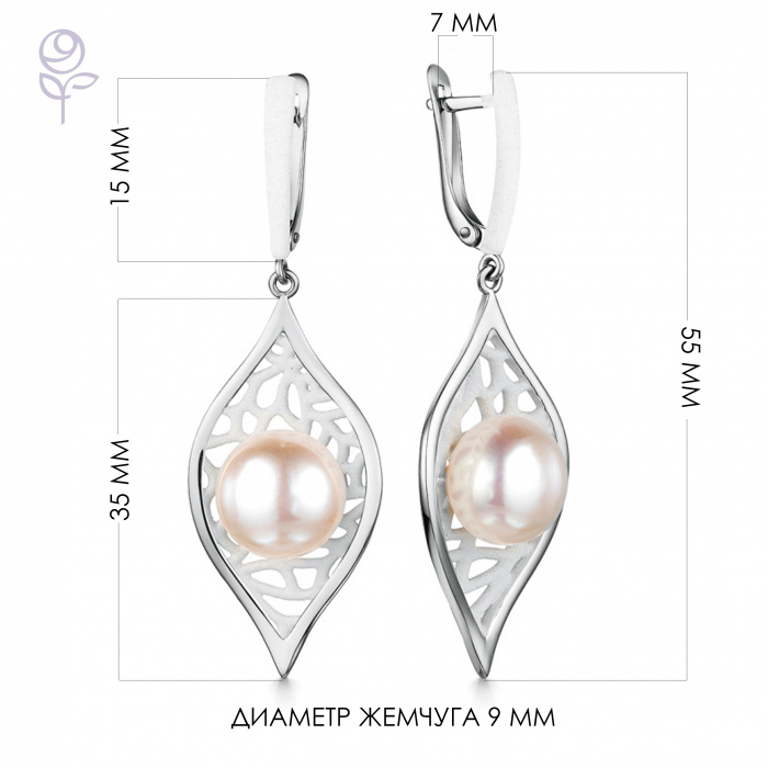 Металл: Серебро Вставка: жемчуг культивированный Размер жемчуга: 9-9,5 мм Форма огранки жемчуга: Кабoшон Покрытие: Родий Дополнительные вставки: Без вставок