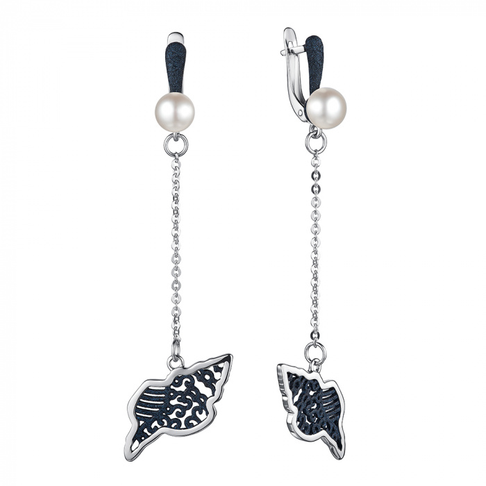 Вставка: жемчуг культивированный Размер жемчуга: 6-6,5 мм Форма огранки жемчуга: Кабoшон Покрытие: Родий Цвет эмали: Синяя Дополнительные вставки: Без вставок