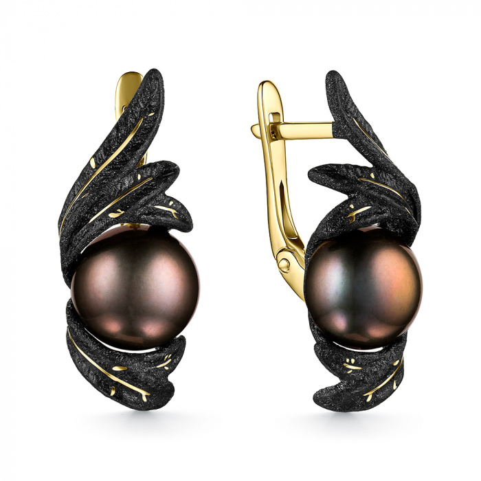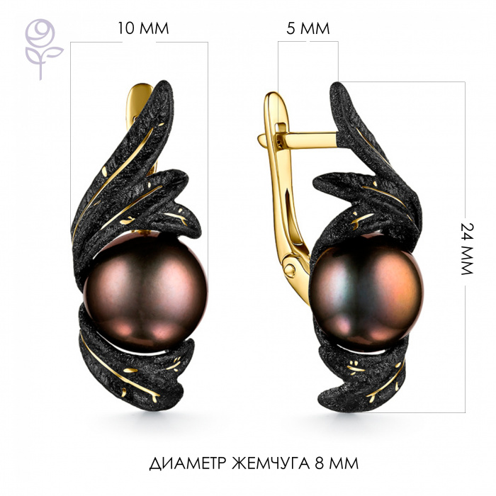 Вставка: жемчуг культивированный Размер жемчуга: 8-8,5 мм Форма огранки жемчуга: Кабoшон Покрытие: Позолота Цвет эмали: Черная Дополнительные вставки: Без вставок