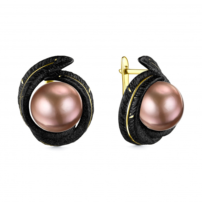 Металл: Серебро Вставка: жемчуг барокко культивированный Форма огранки жемчуга: Барокко Покрытие: Позолота Цвет эмали: Черная Дополнительные вставки: Без вставок