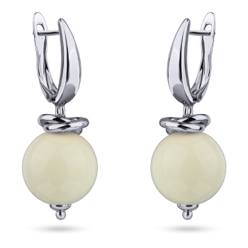 Изготовлено из ювелирного сплава на основе латуни с гальваническим покрытием родием. Изделие украшает ювелирная смола диаметром 14мм цвета сливочное масло. Длина серьги 3.4см. Английская застежка.
