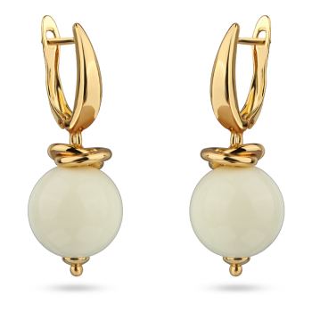 Серьги Сфера (смола сливочное масло 14мм; покрытие золото), Есть комплект