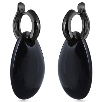 Изготовлено из ювелирного сплава на основе латуни с гальваническим покрытием черным родием. Изделие украшает смола черного цвета. Размер серьги 4.5х2см. Английский замок.