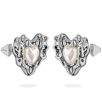 Изготовлено из ювелирного сплава на основе латуни с гальваническим покрытием родием. Изделие украшает ювелирная смола белого цвета. Размер серьги 2х1, 8см. Застежка-гвоздики.