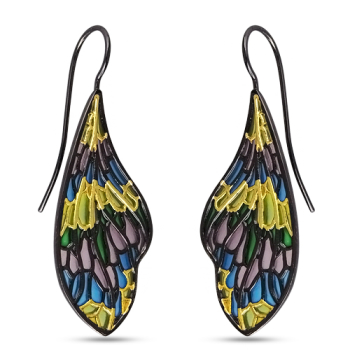 Изготовлено из ювелирного сплава на основе латуни с гальваническим покрытием черным родием и золотом. Изделие вручную расписано ювелирной краской разного цвета, покрыто эмалью. Застёжка в форме крючка. Длина 6см.