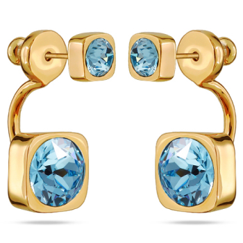 Серьги Теннис (кристаллы SW аквамарин 4мм и 8мм; покрытие золото), Есть комплект