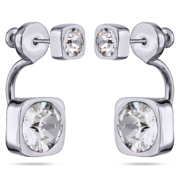 Изготовлено из ювелирного сплава на основе латуни с гальваническим покрытием родием. Изделие украшают белые кристаллы SW диаметром 4 и 8мм. Длина серьги 2.3см. Застежка — гвоздики.