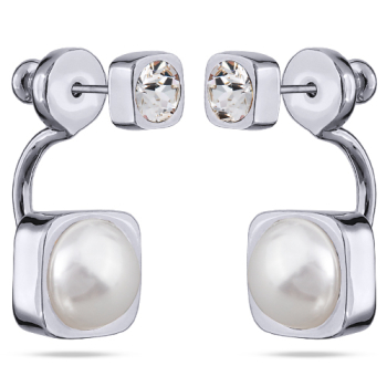 Изготовлено из ювелирного сплава на основе латуни с гальваническим покрытием родием. Изделие украшают кристаллы SW диаметром 4мм и жемчуг Майорка диаметром 8мм белого цвета. Длина серьги 2.3см. Застежка-гвоздики.