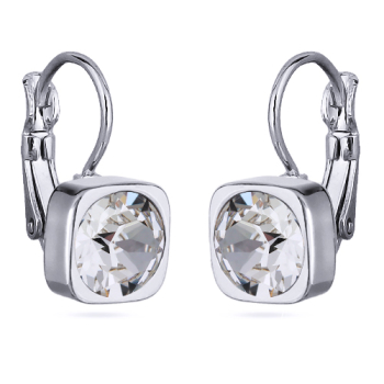 Изготовлено из ювелирного сплава на основе латуни с гальваническим покрытием родием. Изделие украшают кристаллы SW белого цвета диаметром 8мм. Длина серьги 1, 8см.