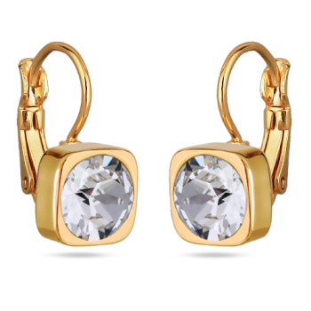 Изготовлено из ювелирного сплава на основе латуни с гальваническим покрытием золотом. Изделие украшают кристаллы SW белого цвета диаметром 8мм. Длина серьги 1, 8см.