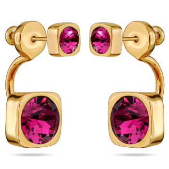 Изготовлено из ювелирного сплава на основе латуни с гальваническим покрытием золотом. Изделие украшают кристаллы SW диаметром 4 и 7мм цвета фуксия. Длина серьги 2.3см. Застежка-гвоздики.